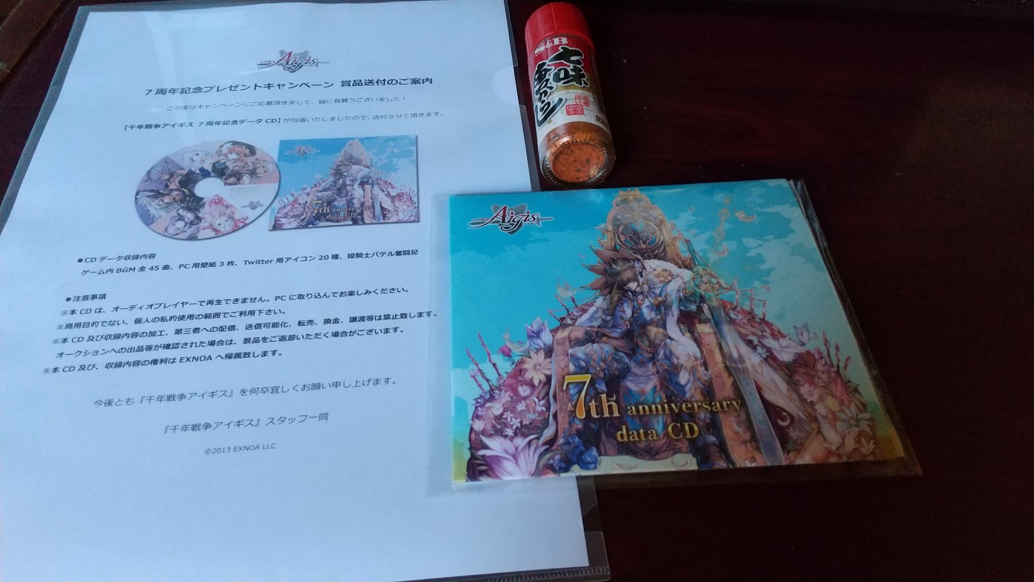 八熊 一也 千年戦争アイギス7周年記念データcdが届いてました ありがとう アイギス様